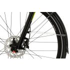 A 2x9 fokozatot kínáló CUES szettet a gyártó SHIMANO hidraulikus tárcsafékekkel egészített ki, hogy a váltás mellett lassítás is a lehető legkisebb erőfeszítést igényelje. Az TRANS 5.0 esetében első villa az SR SUNTOUR NEX sorozatból kerül ki, 63mm finom rugóutat kínál opcionális blokkolással a felesleges mozgás kiiktatásához. Ez a „teleszkópvilla” már simán megbirkózik a kisebb akadályokkal, és a töredezett útfelület sem rázza ki a lelket a bicajosból. Végezetül a kényelem szempontjából fontos megemlíteni, hogy a nyereg pihe-puha zselés párnázással ellátott SELLE ROYAL gyártmány.