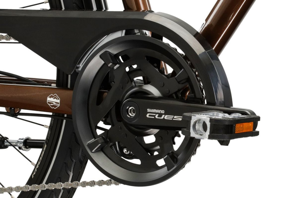 A TRANS 5.0 modell az idén megújult, és ezzel párhuzamban számos fontos fejlesztést kapott. Így még jobban képes kielégíteni a trekking túrakerékpárral szemben támasztott magas igényeket. A fő változás a SHIMANO CUES forradalmi alkatrészcsalád integrálása. A LINKGLIDE technológiát alkalmazó CUES alkatrészcsalád új fejezetet nyit a láncváltók történetében: háromszoros tartósság és kiemelkedő váltásteljesítmény jellemezi, ráadásul mindez már a belépő kategóriás bringáknál is elérhető. A szokványos három első lánckerék helyett az új rendszer kettőt kínál, mindamellett a különleges széles hátsó áttételtartomány ezt bőségesen kompenzálja. A technológiát a SHIMANO az MTB és gravel alkatrészekből adaptálta, ahol már el sem tudnánk képzelni a bonyolult három lánctányéros váltást. Az eredmény valóban forradalmi: az egyszerűbb működés, ami egyben gyorsabb, finomabb és csendesebb is.